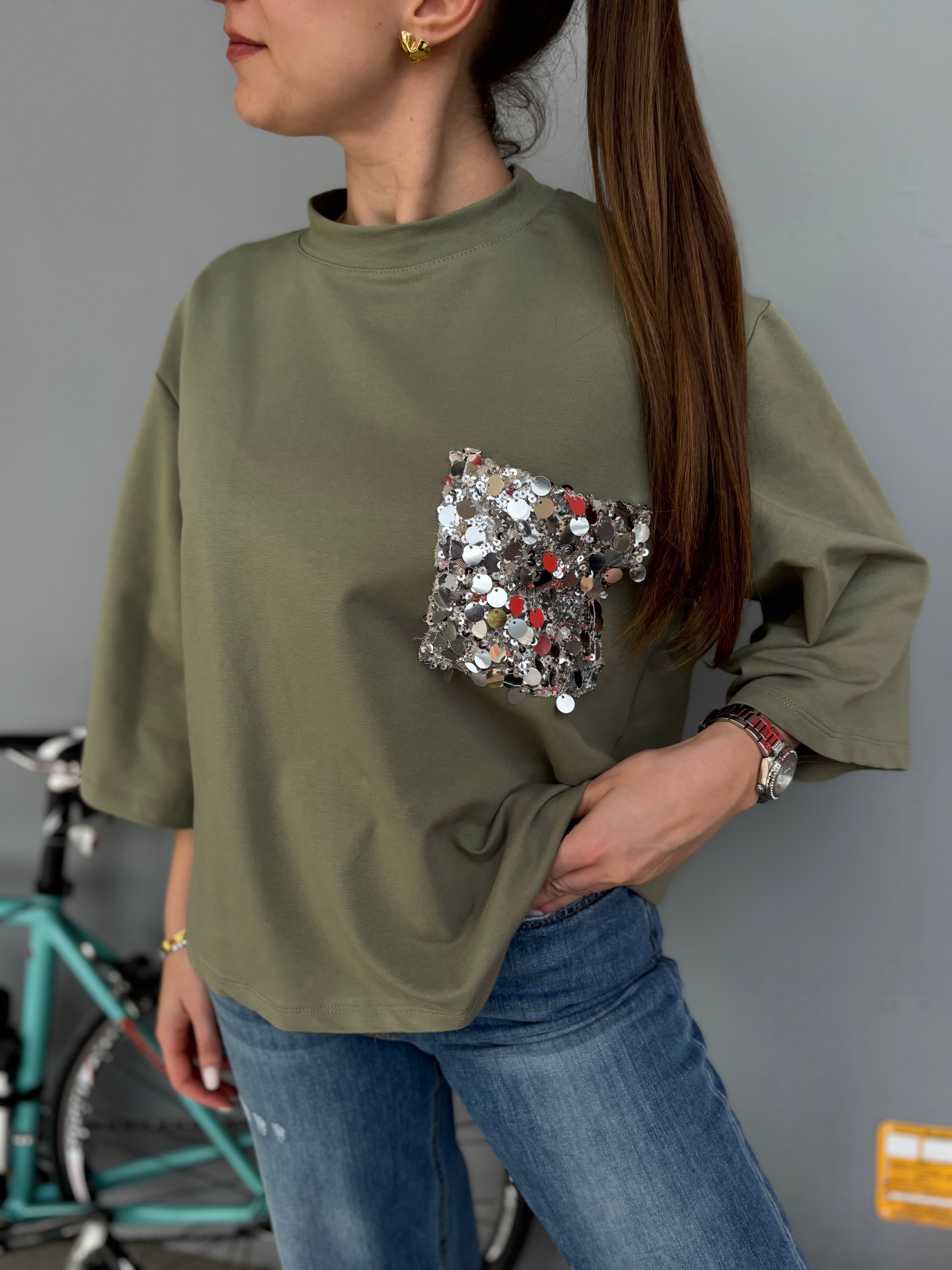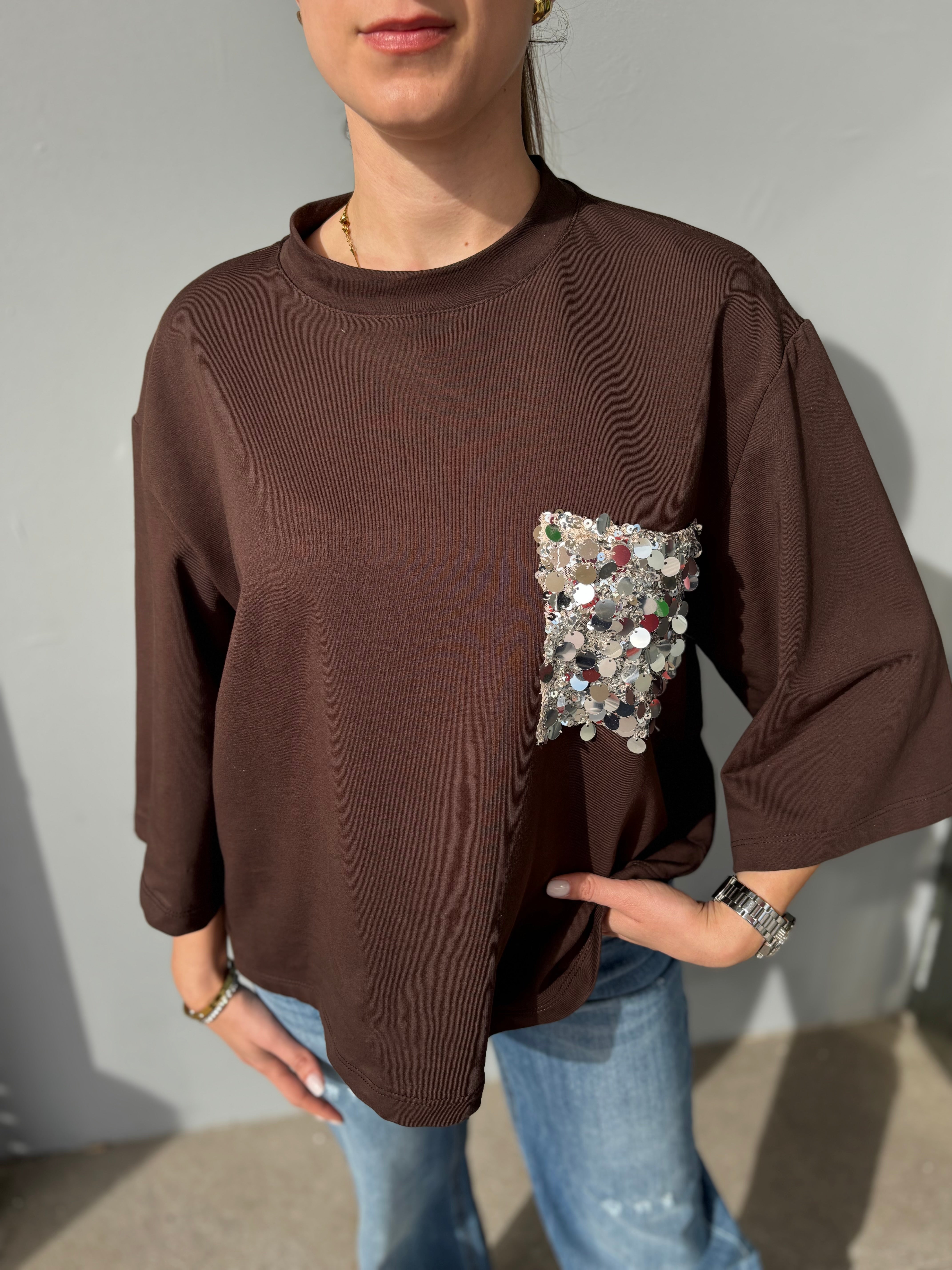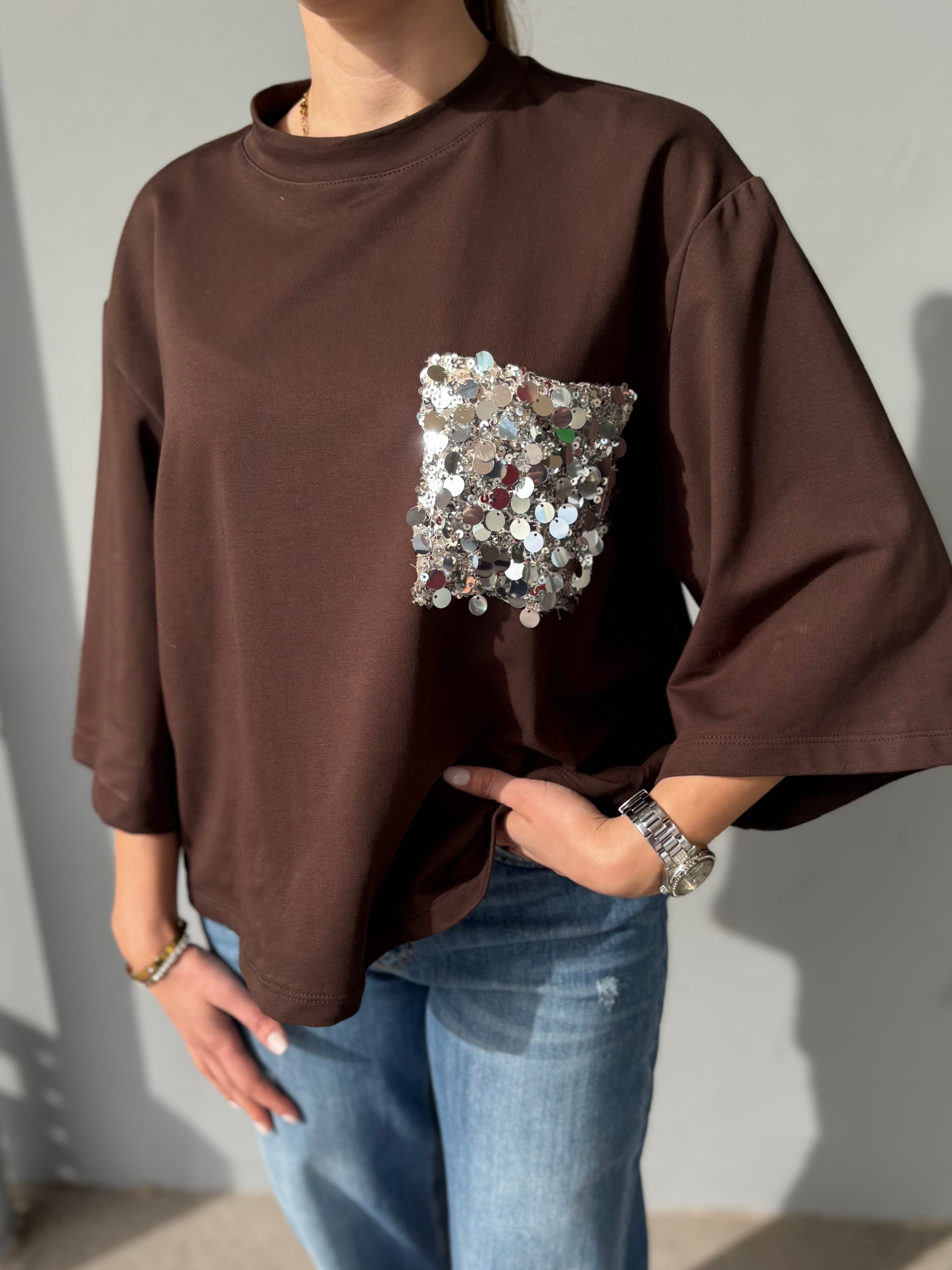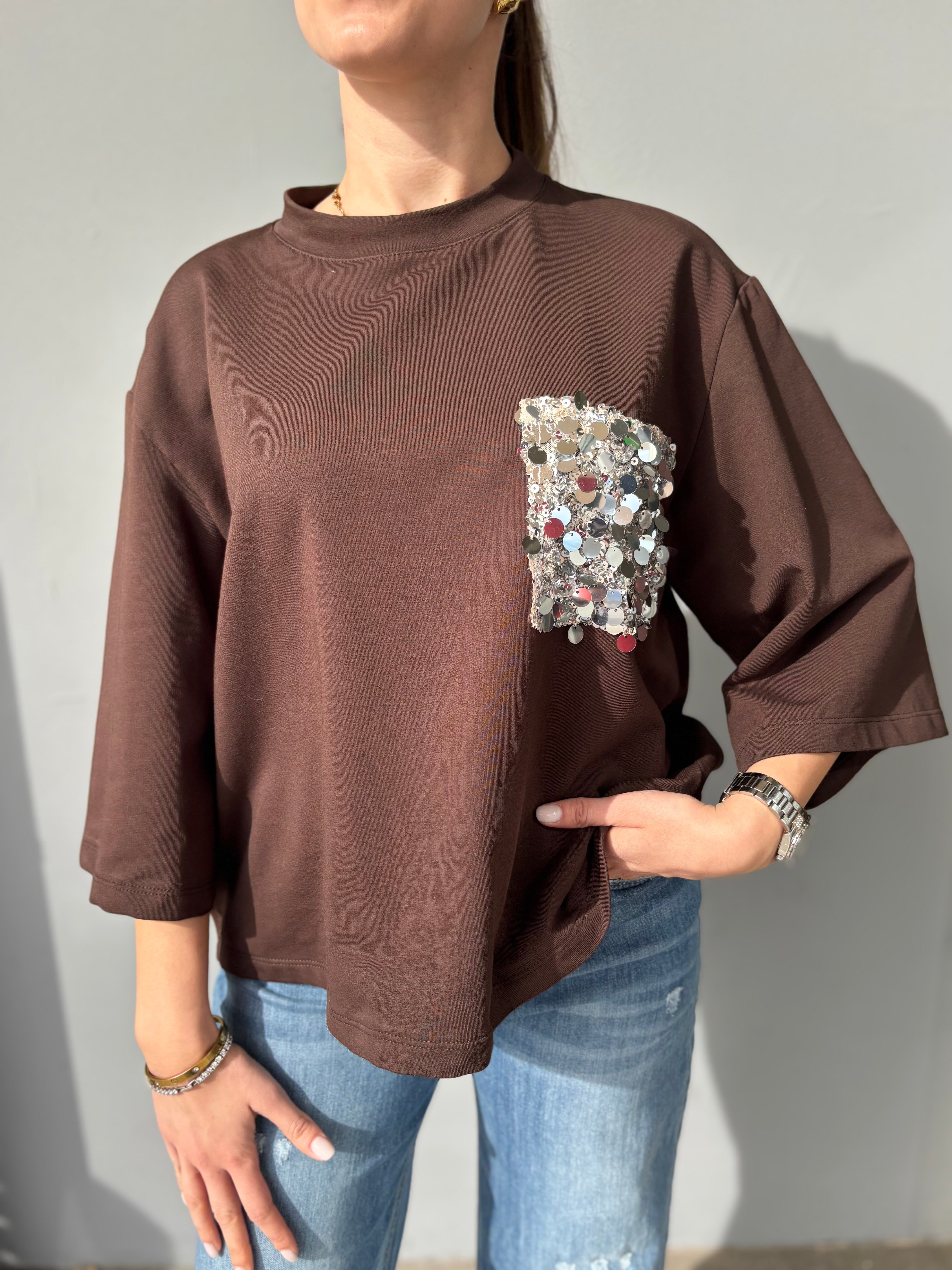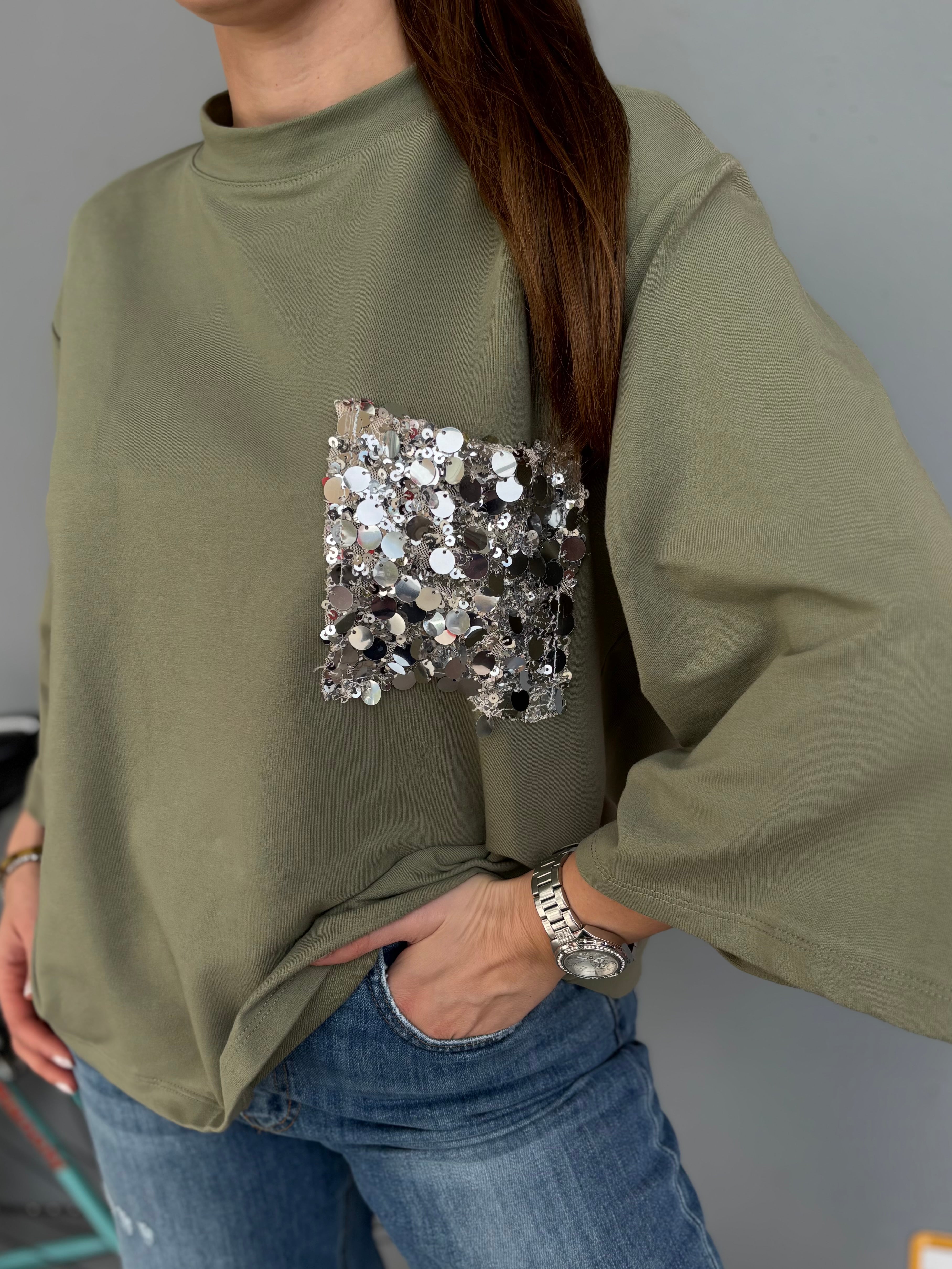 Felpa manica tre quarti con pailletes