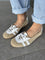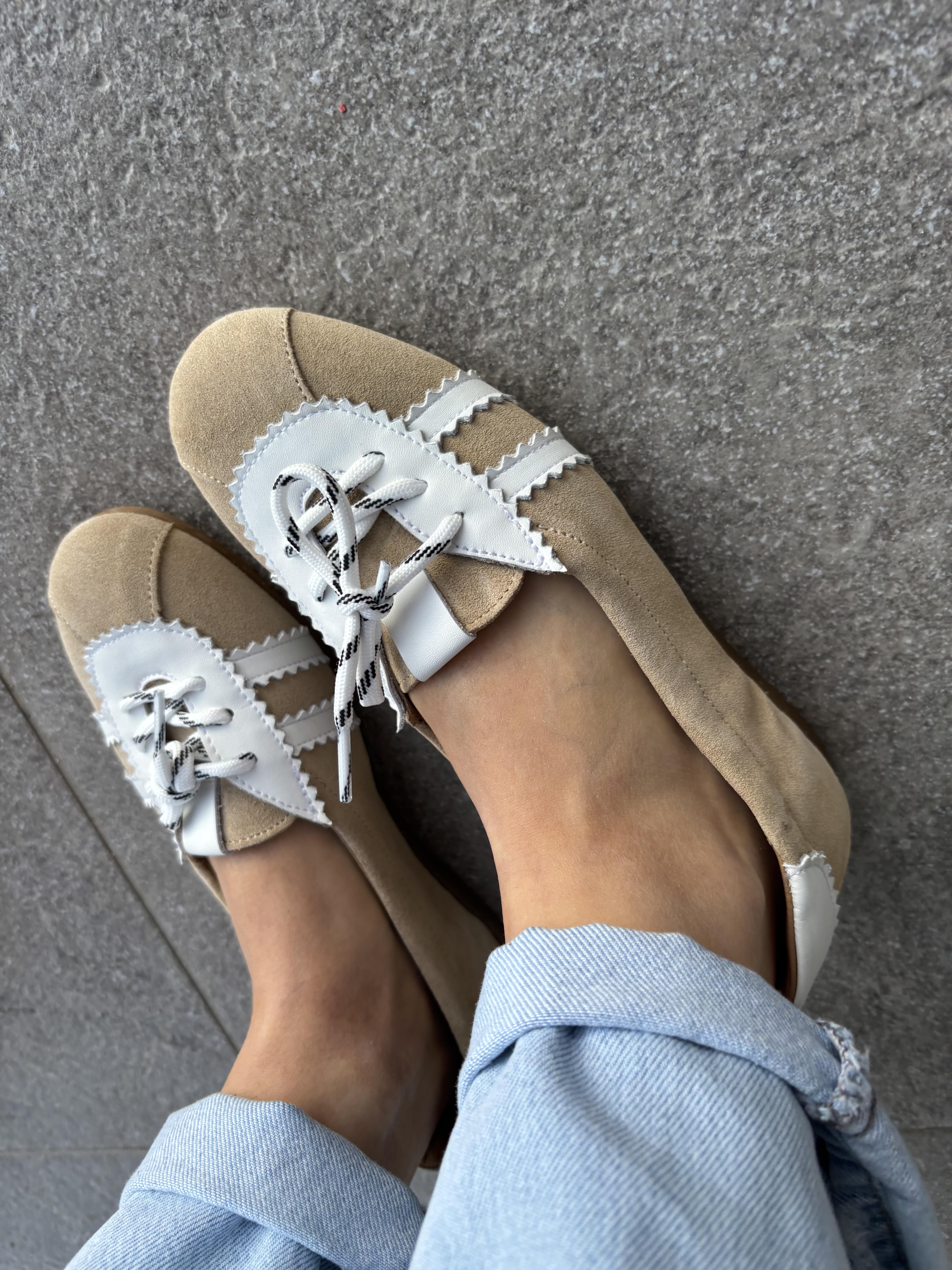 Ballerina stringata in camoscio,inserti in pelle, tacco 1cm