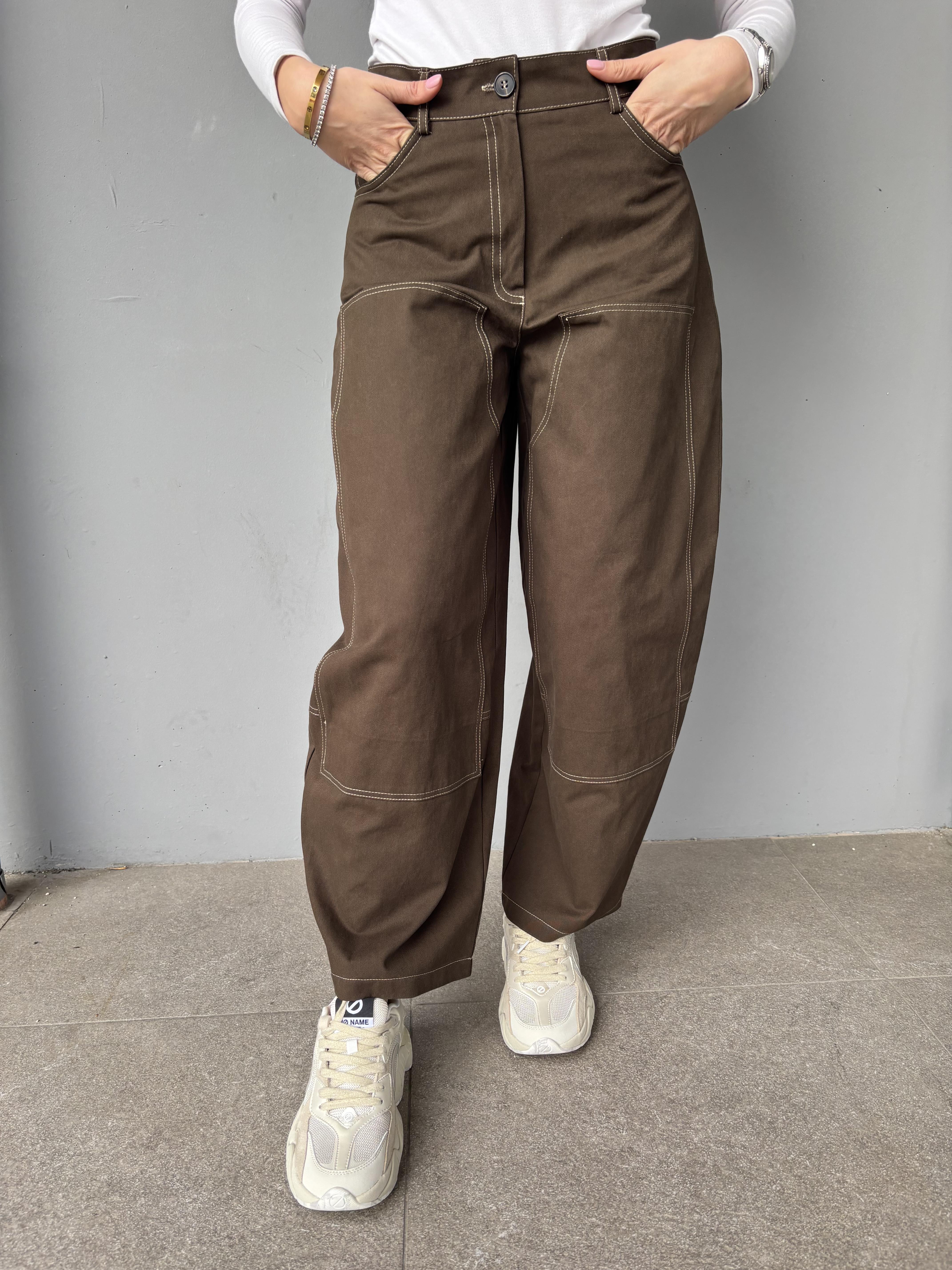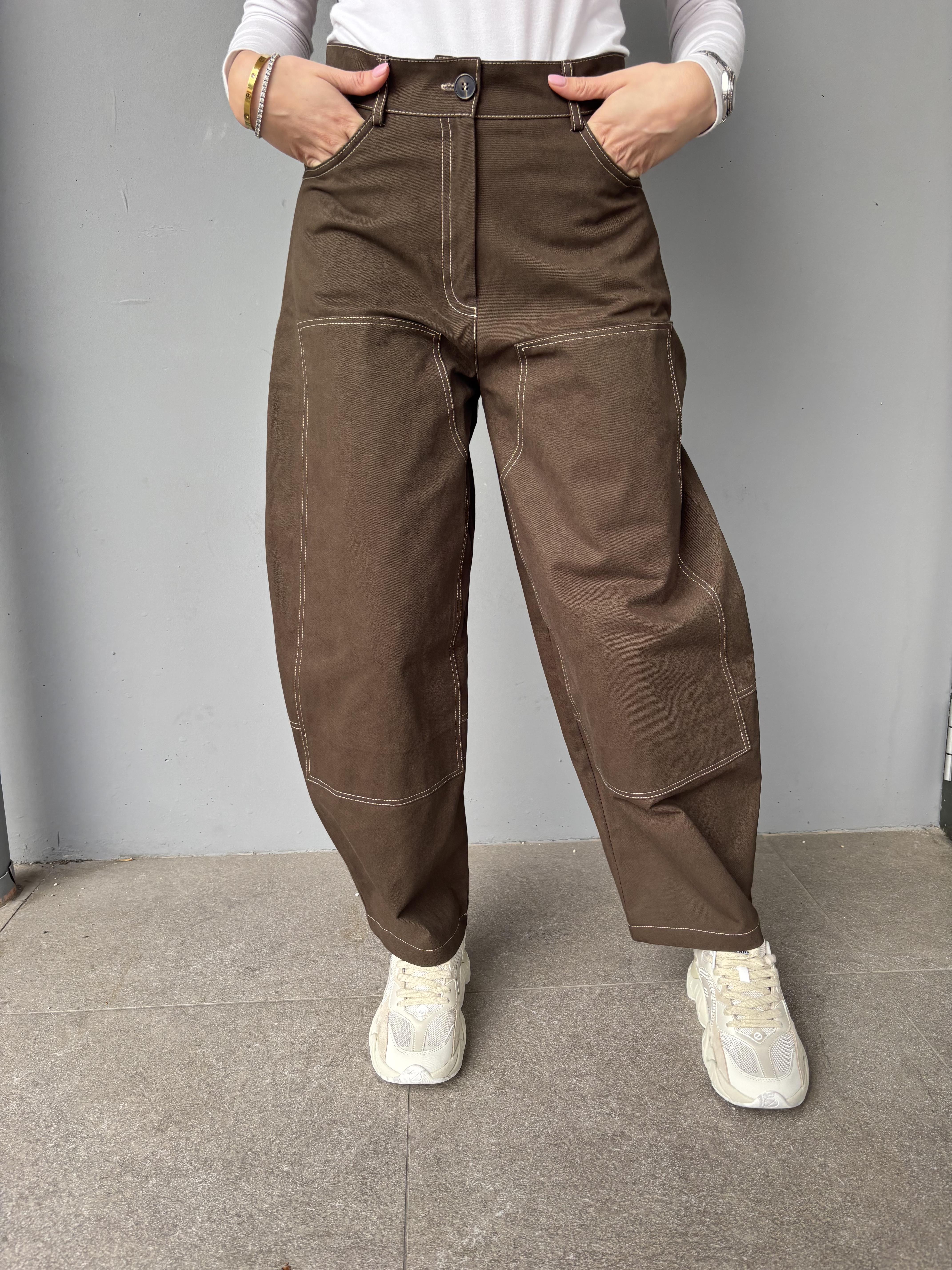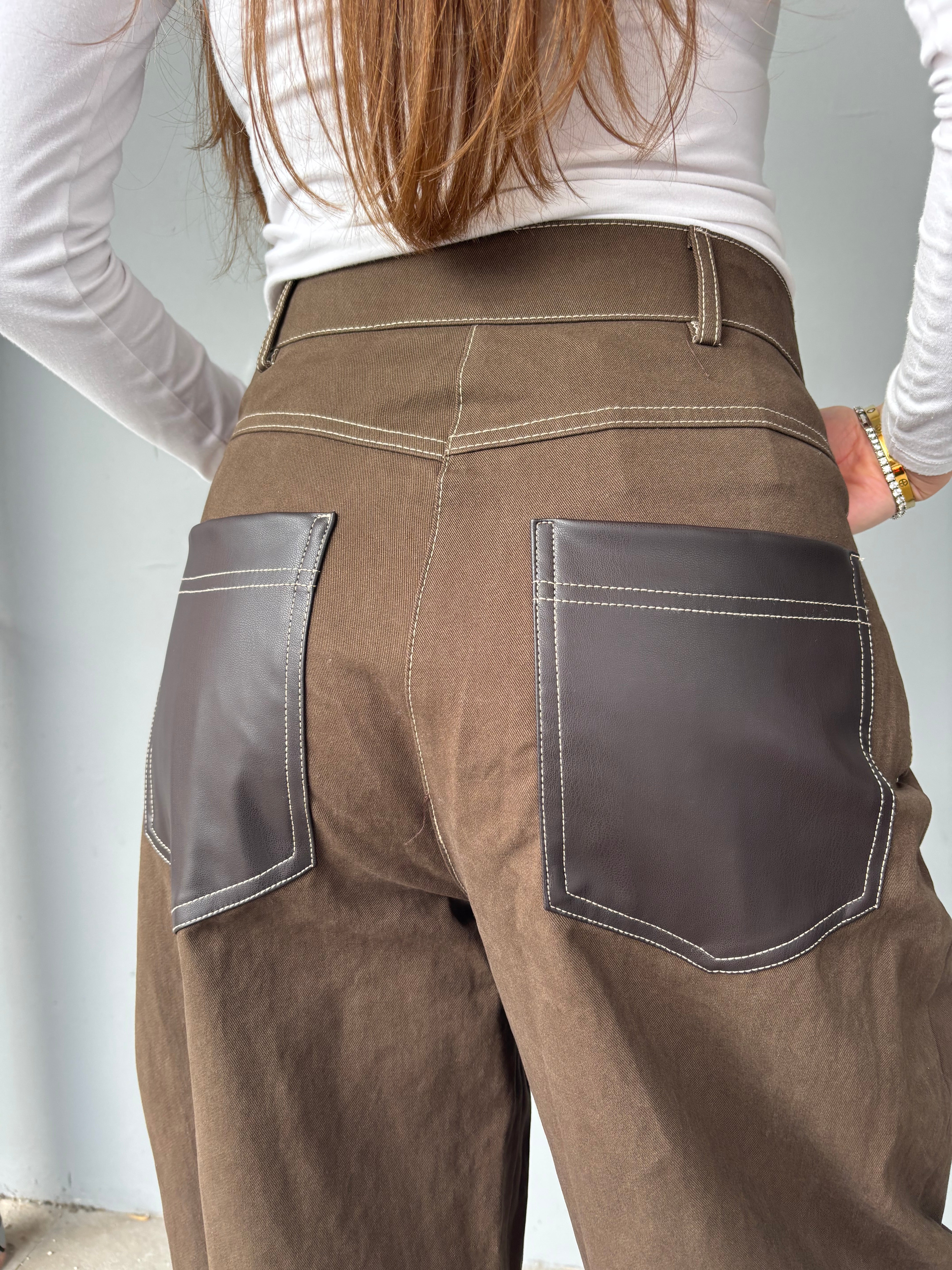 Pantalone worker con tasche in ecopelle