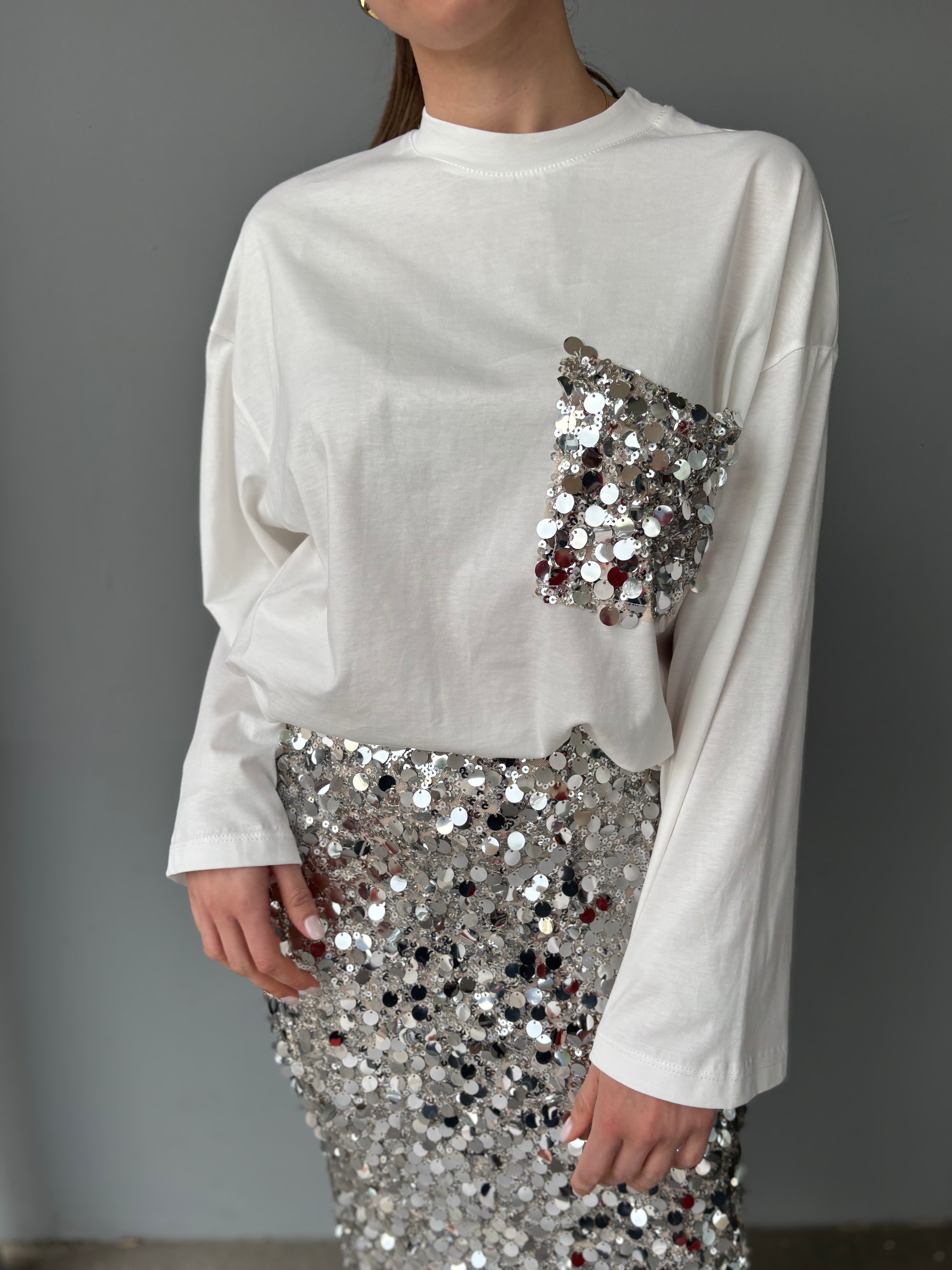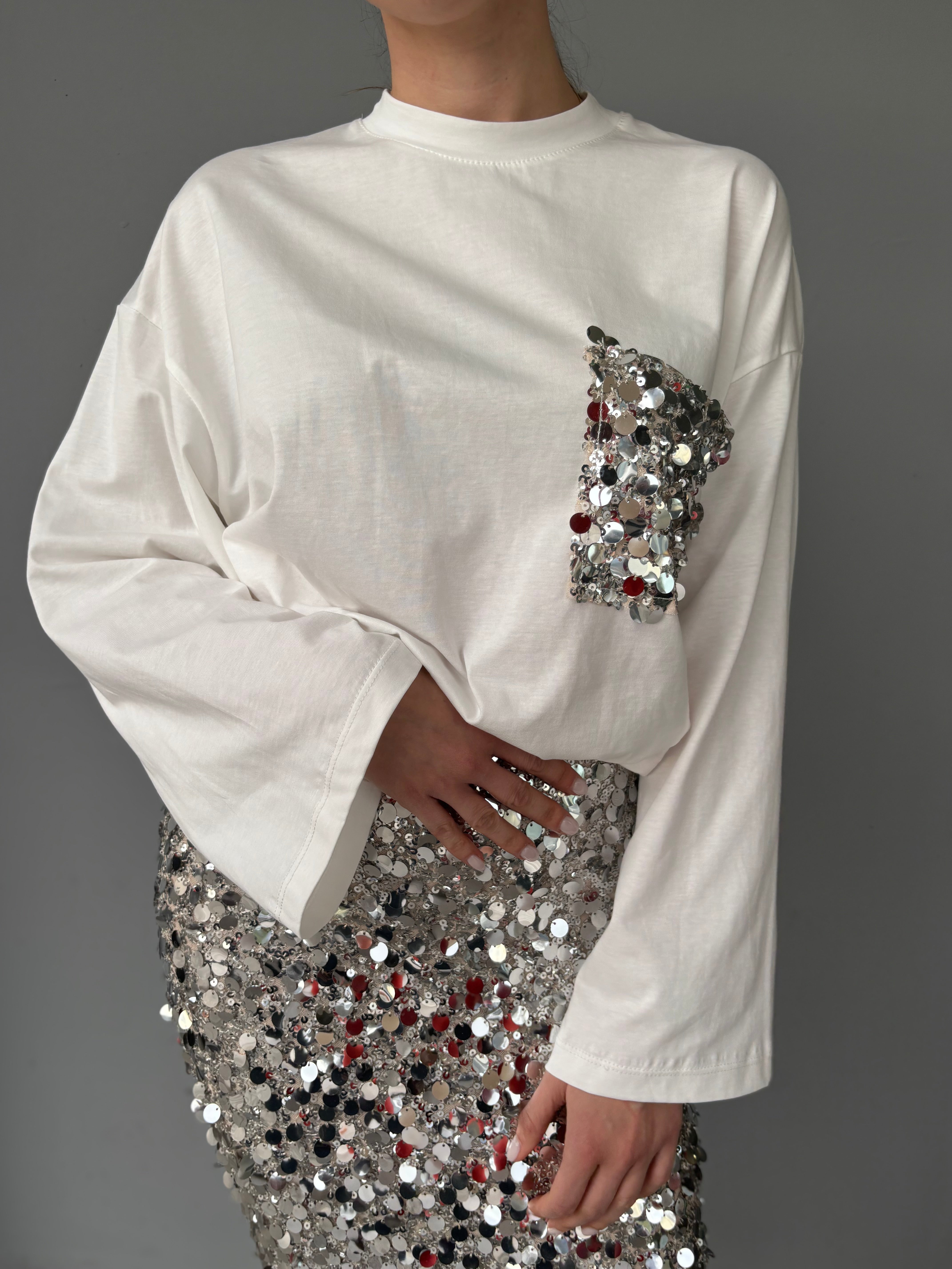 T-shirt modello largo con tasca frange
